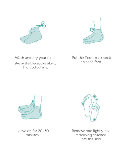 It comes with 2-single use sock-like foot mask to remove calluses and dead skin cells with natural plant-derived ingredients, leaving feet smooth and soft with a pleasant odour.